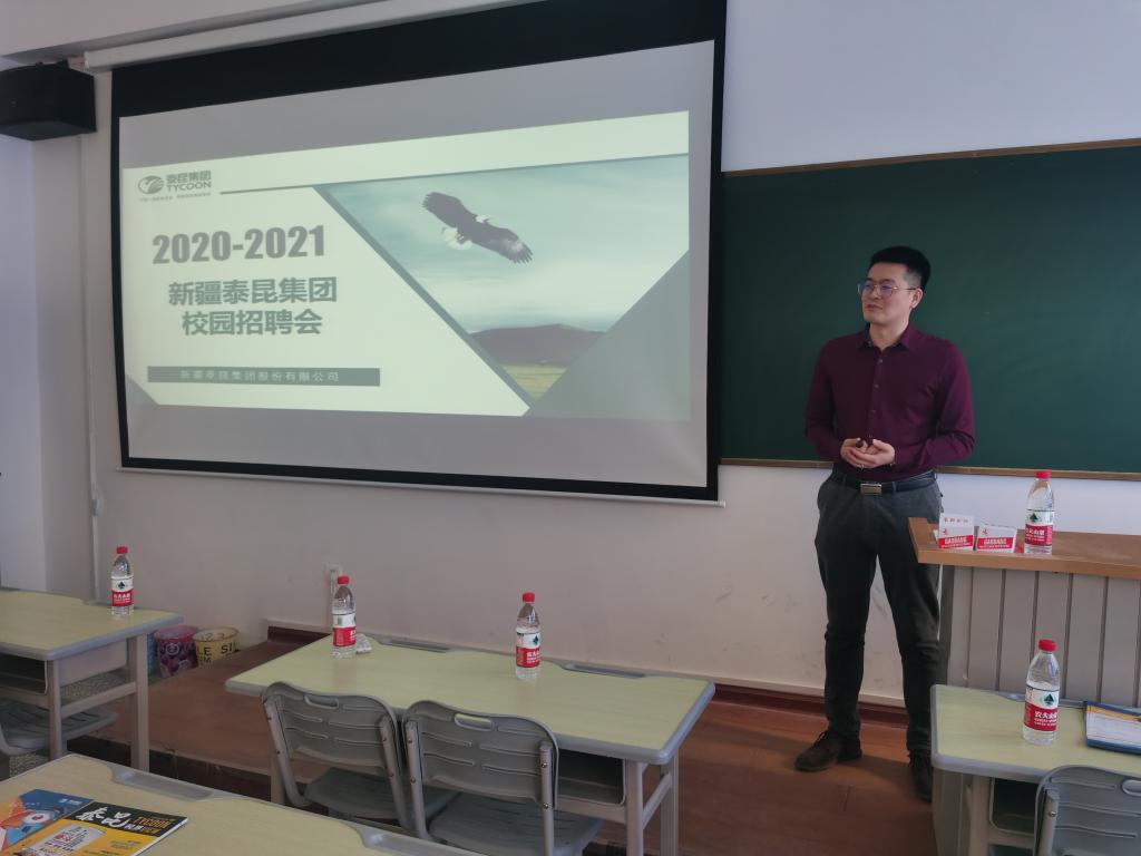 此次到经管学院招聘的是农业产业化国家重点龙头企业——新疆泰昆集团股份有限公司。为了让学生更直观地了解企业,在招聘宣讲会中,集团招聘经理宋磊带领现场同学观看企业招聘宣讲PPT,感受51短视频和发展历程,以第一视角全面客观地了解企业,鼓励学生进企实习、留企发展。为了留住人才,泰昆集团相关负责人还清晰的提供了新员工的晋升通道,用技术、管理等多方位的发展空间吸引更多的人才关注泰昆集团。宣讲会结束后有部分同学现场投递简历并积极与企业对接,详细了解企业发展情况和各项管理制度。