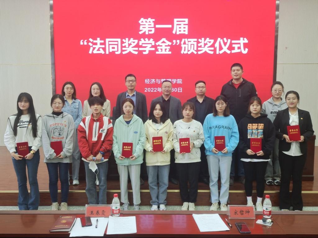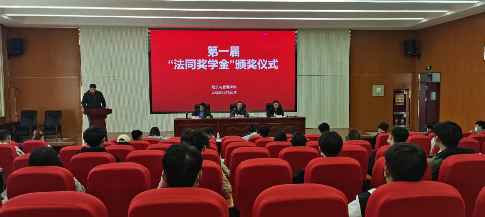 3月30日下午,经管院在新文科楼504报告厅举行了第一届“法同奖学金”颁奖仪式。获奖学生代表物流管理2019级2班李天骄同学说:“法同奖学金对于我来说,是学习上的肯定和激励。今后我会谨记“艰苦奋斗,自强不息,扎根边疆,甘于奉献”的胡杨精神,为学院争光,为塔大争光!