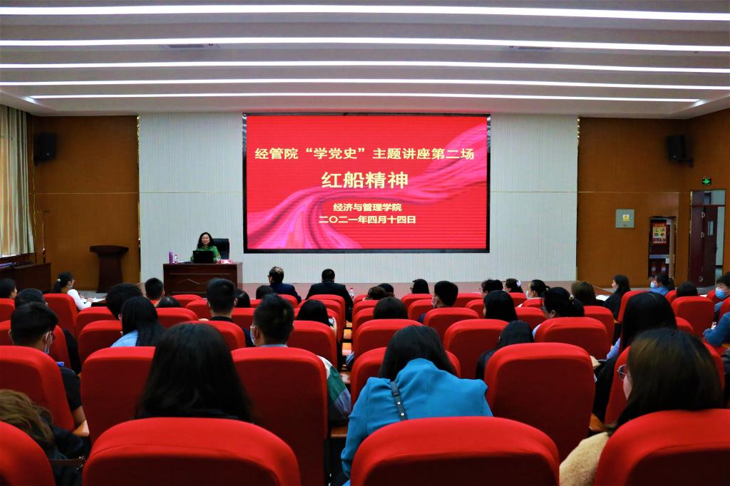 4月14日下午,经管院“学党史”主题的系列讲座第二场--“红船精神”在新文科楼504报告厅进行,由银龄教师、吉林大学教授傅箐林主讲。学院领导、各党总支(书记)、全体党员参加聆听了报告,报告会由学院党委副书记谷建杰主持。