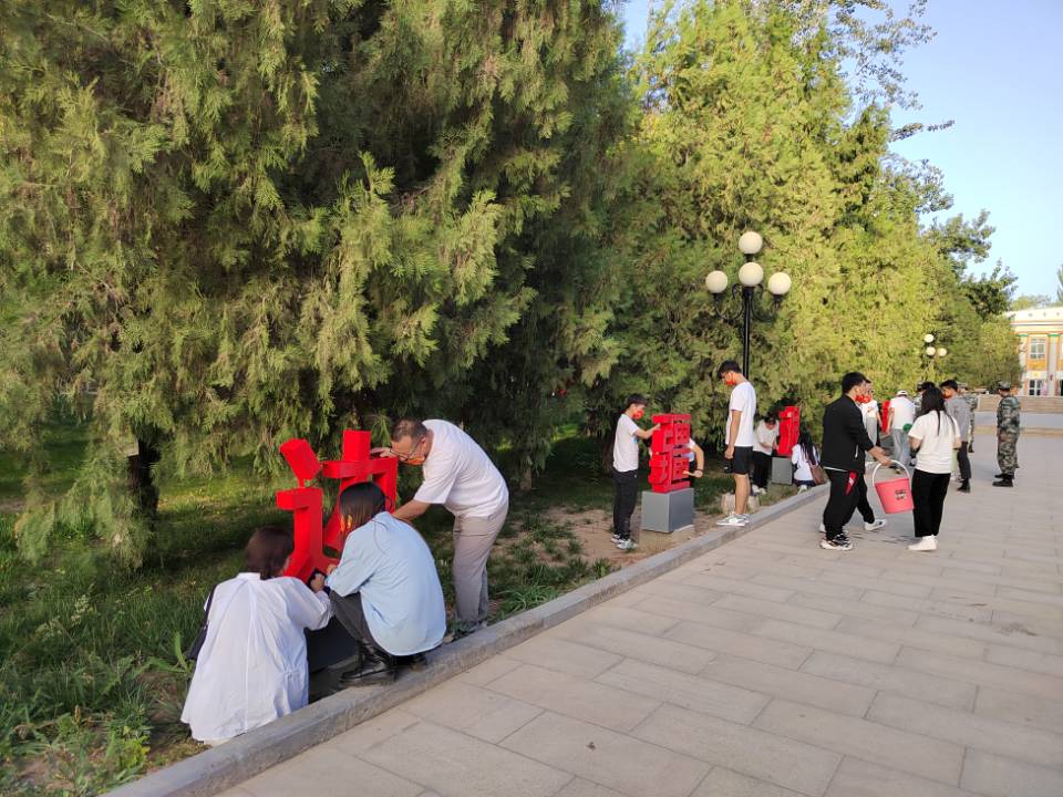大家还重新摆放了王震将军像前的花盆,清理了道路、绿化带中的落叶和垃圾,不放过任何一个卫生死角,整个活动井然有序,分工明确,效率显著。经过大家的共同努力和辛勤劳动,红色文化广场的面貌焕然一新。