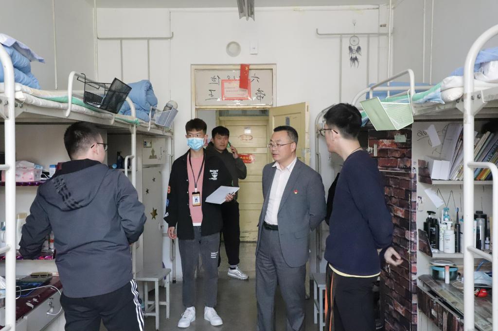 田国林在检查过程中询问同学们的日常情况,并强调,我们一定要把学生的安全放在首位,要坚决维护好学院学生的生命财产安全,全面开展安全隐患排查,严格检查宿舍用电情况,确保宿舍用电安全,消除安全隐患,要重点治理,专项整治,确保学生的人身安全,更好地构建安全校园。