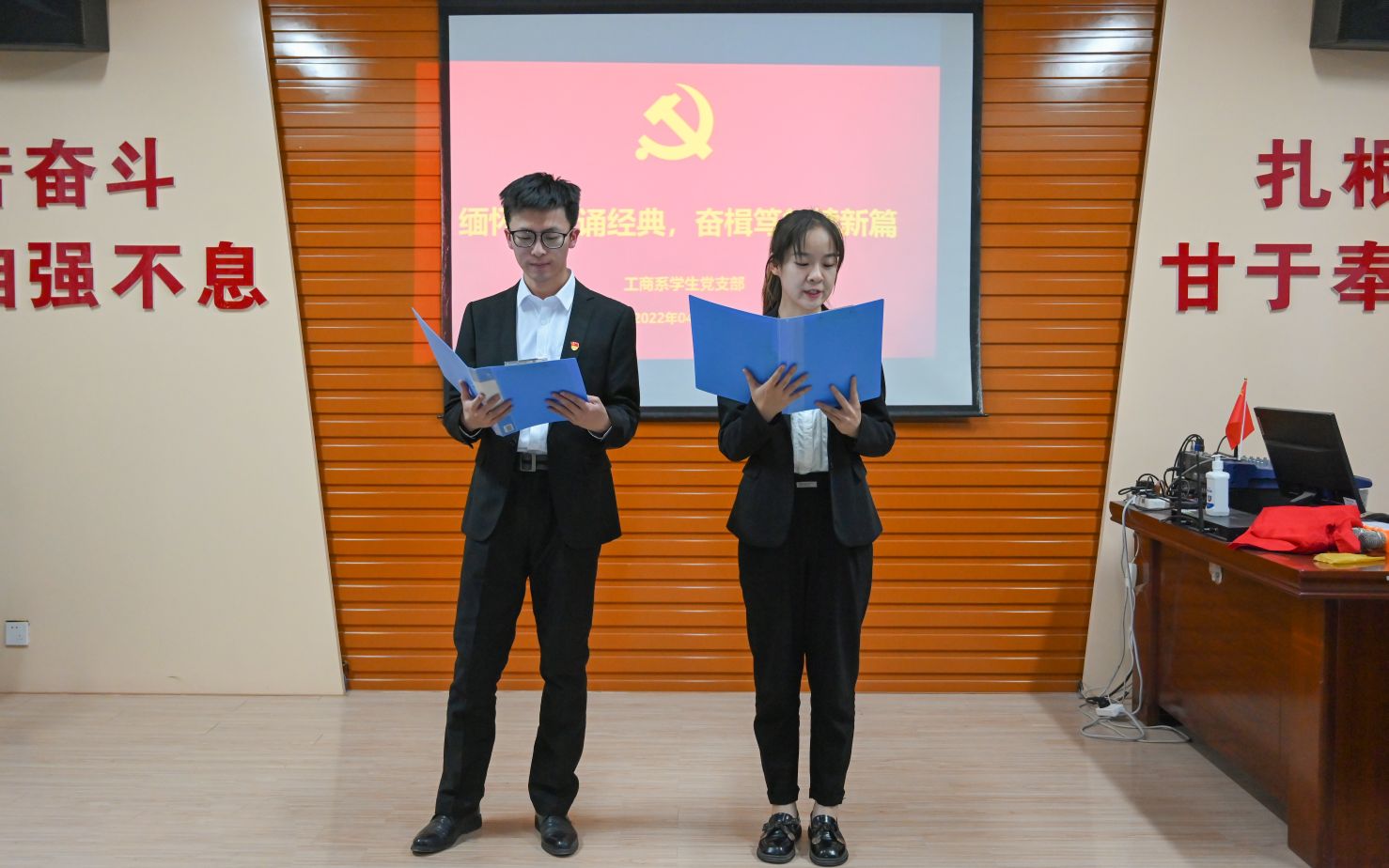 为缅怀革命先烈,追思先烈们为国为民的高尚情操,激发党员同志爱党、爱国情怀,进一步传承和弘扬源远流长的民族精神,4月5日晚,工商系学生党支部于西十2楼社会主义核心价值观基地通过“线上+线下”形式开展以“缅怀先烈诵经典,奋楫笃行谱新篇”为主题的党日活动。党支部全体学生党员参加。