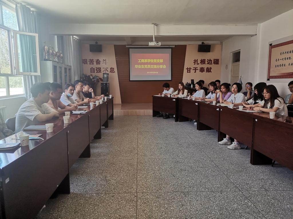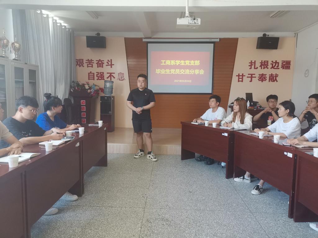 2021年6月6日10:30,工商系学生党支部于西十2楼党团活动室开展“毕业生党员分享交流会”活动,全体党员及部分大三入党积极分子参加了本次活动。