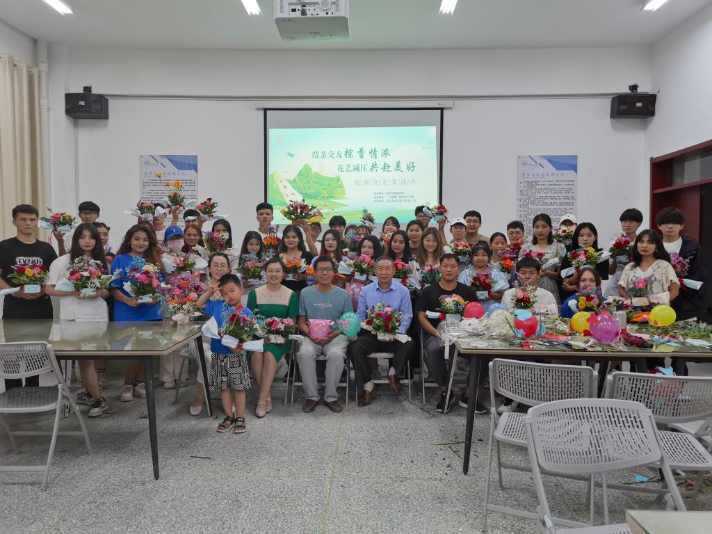 为进一步丰富师生节日生活,拉近师生之间的距离,加强师生之间的交流沟通,6月5日下午,经贸系教师党支部在新文科楼211室组织开展“粽粽情深,端午呈祥”主题民族团结联谊暨“三进两联一交友”花艺沙龙活动。此次活动邀请小胡杨辅导员工作室负责人李丹丹老师进行讲解,共计50余名经贸系教职工和结对学生参加了本次活动。