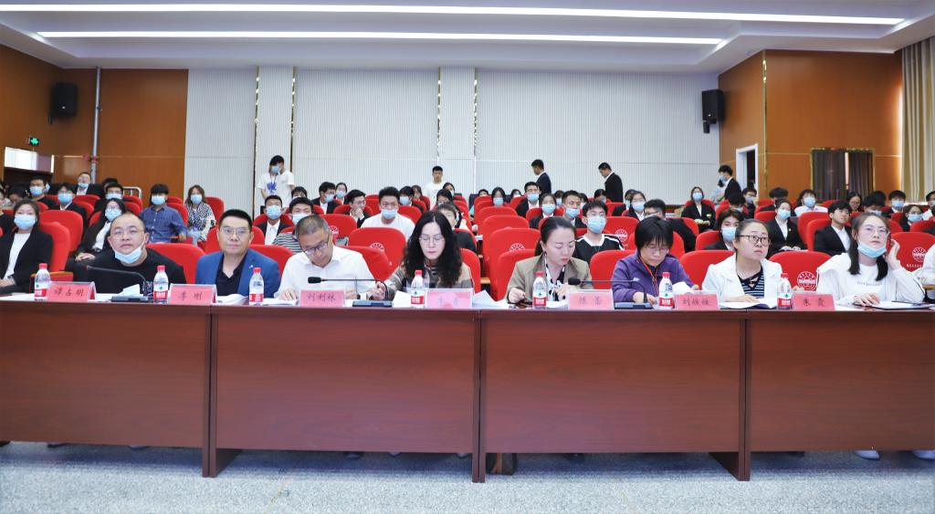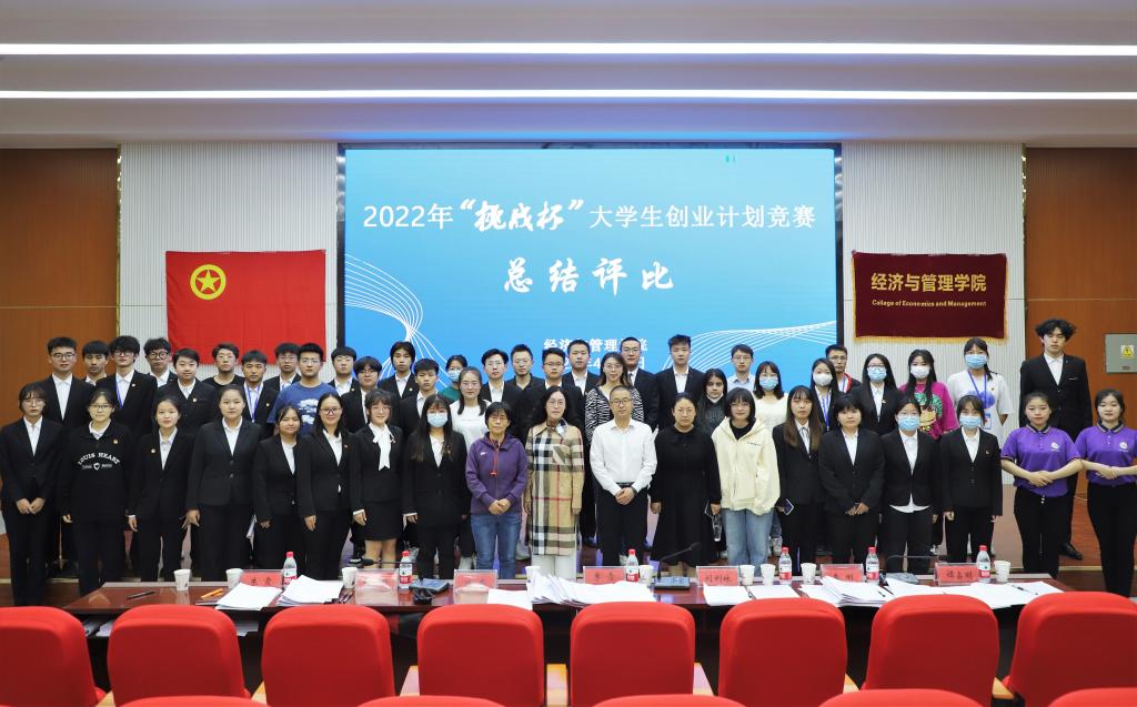 在文科楼报告厅504举行经管院2022年“挑战杯”大学生创业计划竞赛院赛评比大会。竞赛邀请李青、刘利林,陈蕾、李刚、刘媛媛、谭占明、朱霞7位教师担任评委。
