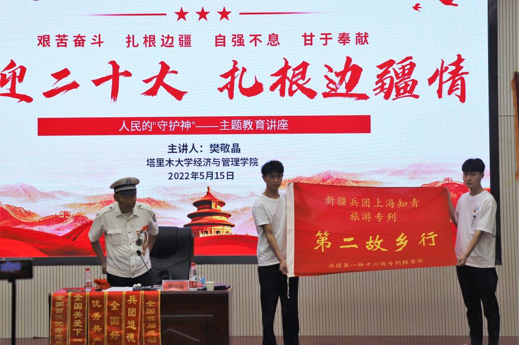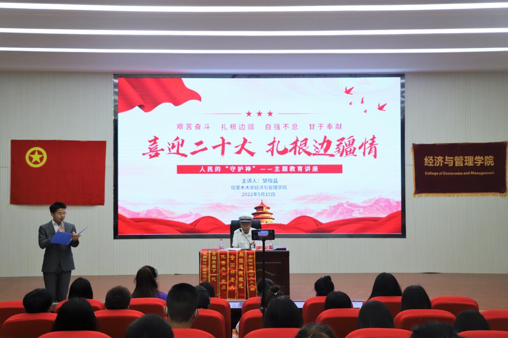 5月15日上午,经管院在文科楼报告厅504举行开展“喜迎二十大,扎根边疆情”——人民的“守护神”主题教育讲座,讲座特邀兵团道德模范樊敬晶作为主讲人。本次讲座采用“线上+线下”同时进行,线下共有100余人,线上共计有2300余人参与,累计点赞量超过3万人次。