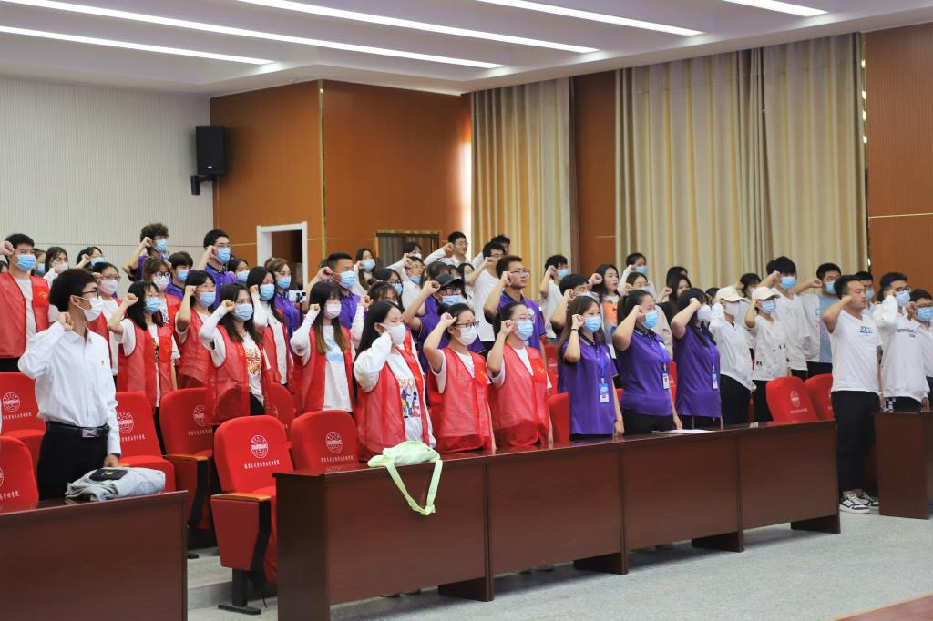 讲座在全体成员的宣誓中落幕。全体师生起立。举起右拳庄严宣誓:“愿以吾辈之青春,复兴伟大之中华;奋斗正青春,青春献给党;请党放心,强国有我;请党放心,强国有我!”
