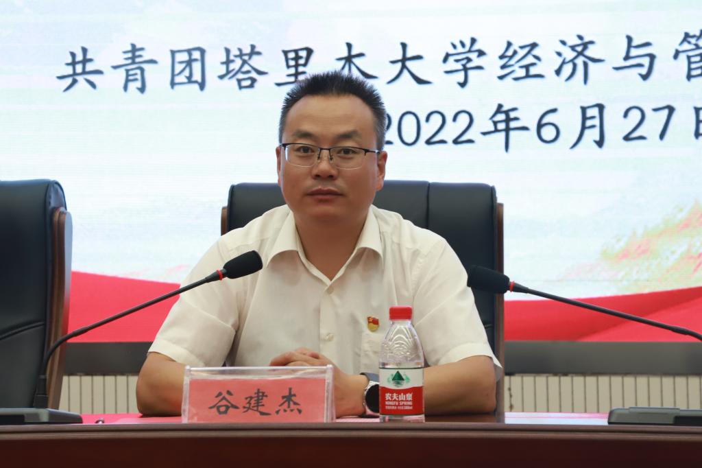 最后,谷建杰高度肯定了学院第十一届学生会开展的卓有成效的工作,同时对学生会提出期望。他表示,学生会要准确把握牢记初心使命的内涵,明确职能定位,反映同学的根本诉求;面对时代要求和历史责任,学生会应锐意进取,团结更多青年学生,在学业、工作和品德方面成为广大同学的表率和标杆。他强调,全体同学应坚定理想信念毫不动摇,以艰苦奋斗践行时代使命,用实际行动践行胡杨精神。同时希望第十二届学生会成员能够以习近平总书记提出的‘做青年友,不做青年官’为工作宗旨,提高修养、争做模范,做服务同学的贴心人,同时与祖国共奋进、与时代同步伐、与学院齐发展,以实际行动迎接党的二十大胜利召开。