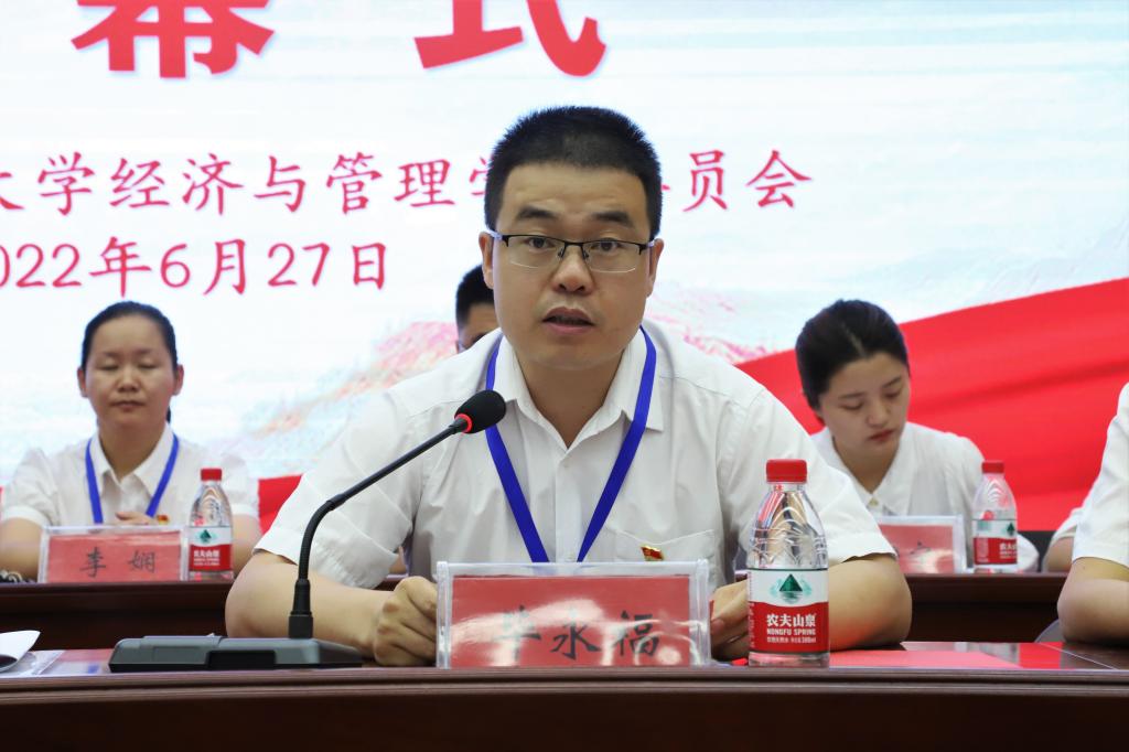 委员会对大会的召开表示热烈的祝贺。经管院党委副书记谷建杰对一直以来关心支持学院工作的学校、党委、学工部校团委表示衷心的感谢,向与会的各位代表和全院青年学生致以诚挚的问候和美好的祝愿,并对学生会的工作表示充分的肯定。