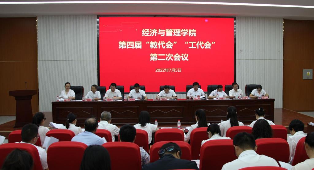 第四届“教代会”“工代会”第二次全体会议顺利召开。经管院党委书记蒋志辉、院长王学剑,党委副书记朱哲,副院长晁伟鹏出席了会议,全体正式代表参加大会。会议由朱哲主持,在新文科楼504会议室举行。