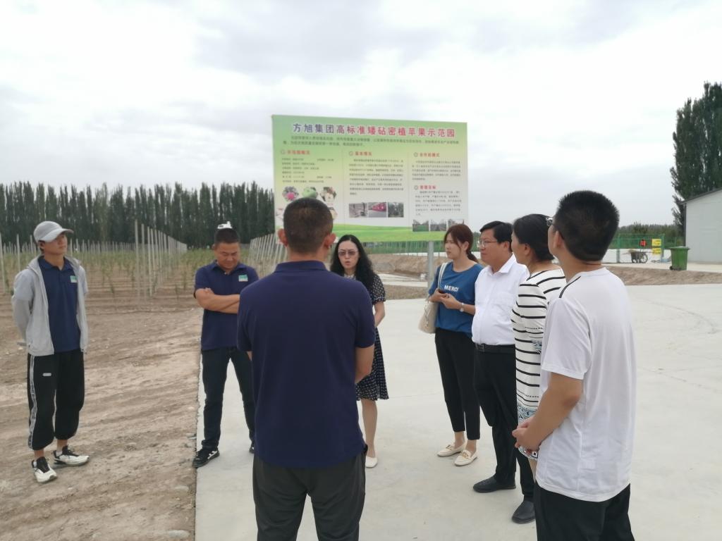 在经济发展办公室负责人的陪同下,王学剑一行参观了众源丝网制品有限公司、五团高标准矮砧密植苹果示范园等。