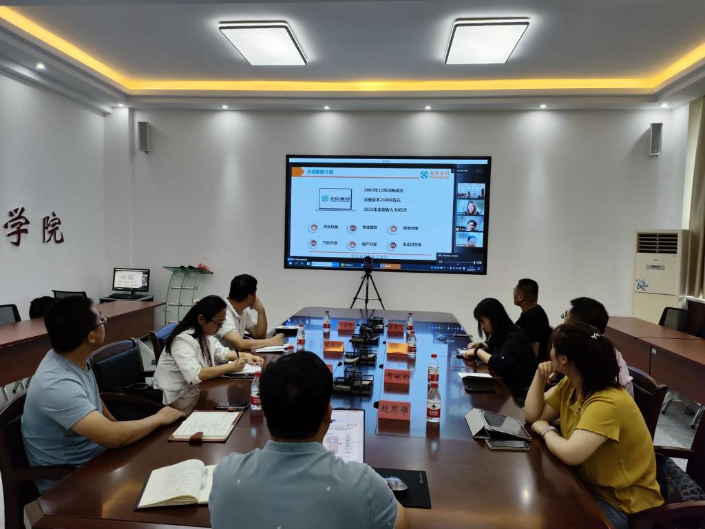 为进一步提高经管院专业教师实践能力和社会服务能力,推进校企合作框架协议走稳走实,9月18日,经管院与天农股份有限公司开展线上“塔大-天农校企专题研讨会”,经管院党委委员、副院长晁伟鹏、工商系党总支书记、主任、专业负责人、专业教师等9人参加,天农股份有限公司人力资源总监曹京、人力资源部长付蓉及相关人员参加,专题研讨重点围绕《天农股份有限公司店长成长手册》展开。