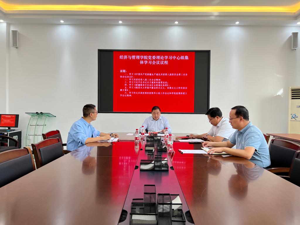 9月21日下午,经管院党委召开理论中心组集体学习会议,学院领导班子全体成员参会,会议由学院党委书记蒋志辉主持。