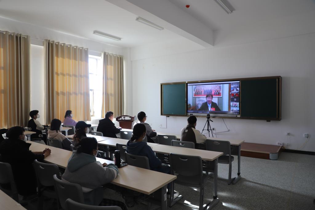 11月16日下午,党的二十大代表寇晓燕通过腾讯会议向全校师生宣讲党的二十大精神。学院在校党员师生在文科实验楼503、404、406室听取了报告。