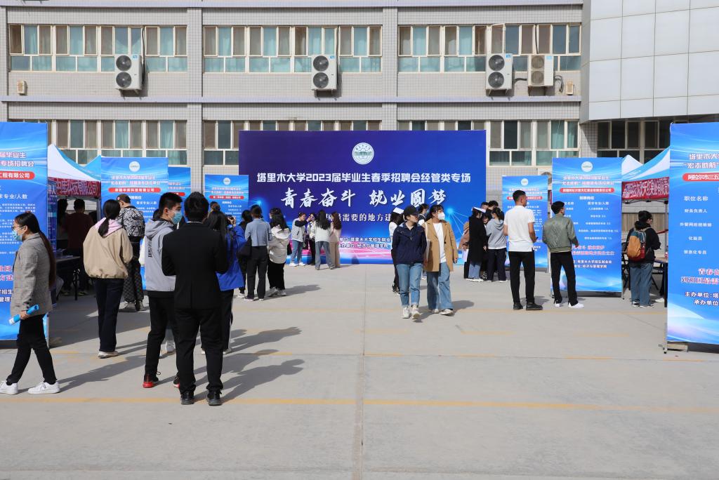 承办的2023届毕业生“宏志助航”经管类专场招聘会在老图书馆东侧顺利开展,以“青春奋斗,就业圆梦”为主题,邀请到第一师供销集团、新疆塔建三五九建工有限责任公司、新疆阿拉尔聚天红果业有限责任公司、阿拉尔市三五九水务(集团)有限公司等12家用人单位,提供就业岗位共364个。