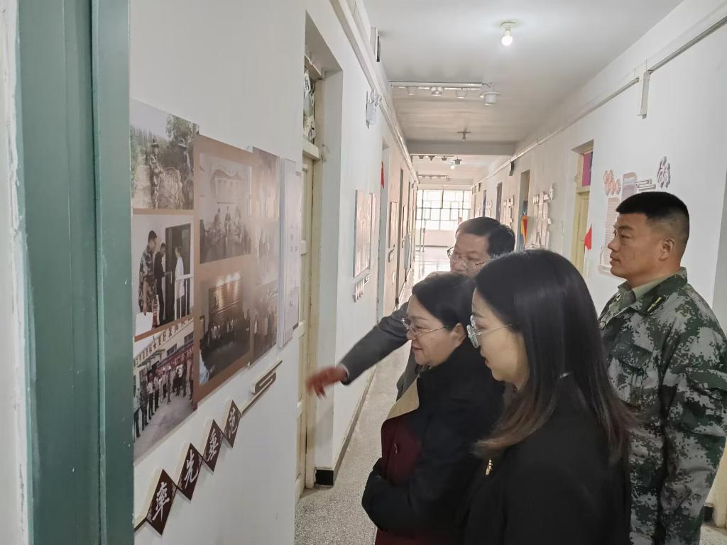 学院讲解员向调研团介绍了基地建设情况。学院宿舍楼外是由社会主义核心价值观、新疆历史、兵团历史、兵团精神、胡杨精神、校园安全、防诈反诈、道德模范、车棚文化等建成的文化宣传展区,宿舍楼内含社会主义核心价值观教育活动室,一楼中国传统文化宣传长廊,二楼社会主义核心价值观宣传长廊,三楼民族团结教育宣传长廊,四楼学生特色经典活动图片展,五楼学生优秀艺术作品展,具象化呈现思政故事,积极发挥“实践”在大学生思想政治教育中的主观能动作用。