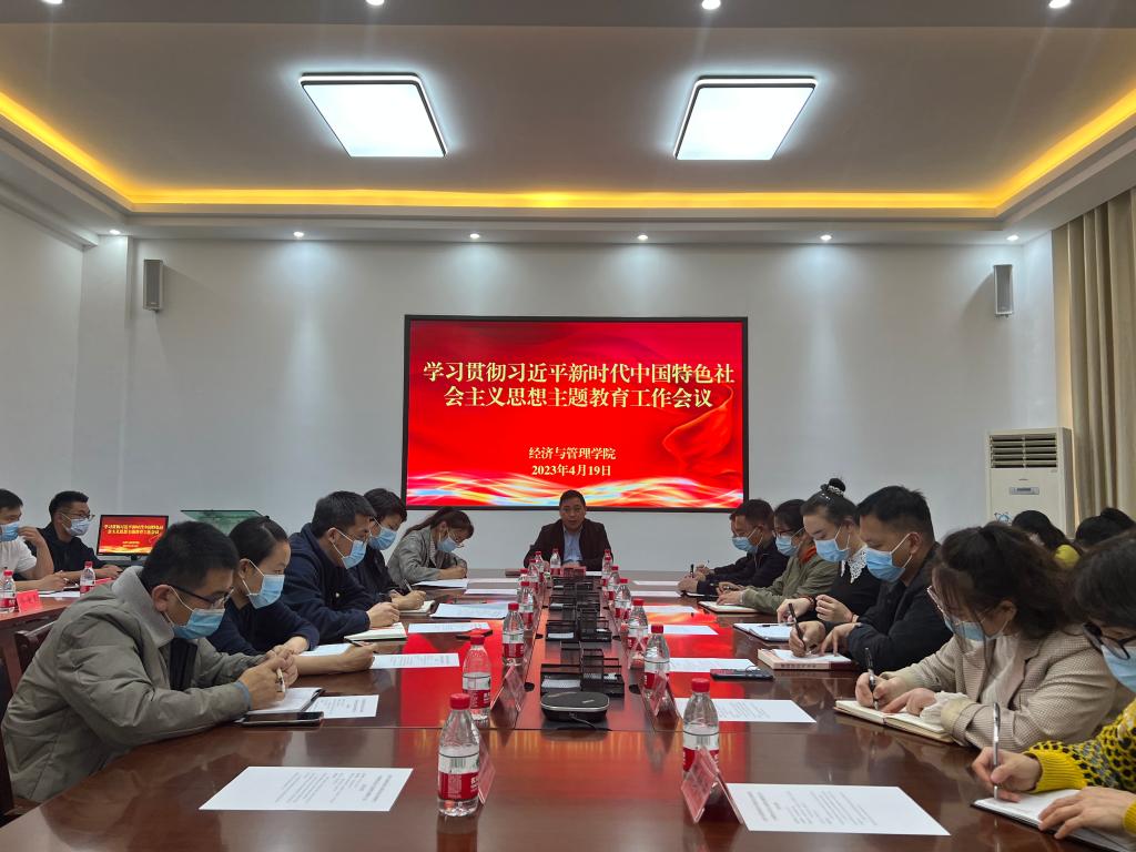 学习贯彻习近平新时代中国特色社会主义思想主题教育工作会议在文科实验楼209会议室召开。会议深入学习贯彻习近平总书记在中央主题教育工作会议上的重要讲话精神及自治区、兵团主题教育工作会议精神。学院党委书记蒋志辉主持会议并讲话。学院在校党委委员、全体中层干部、各党支部支委、教师代表参加会议。