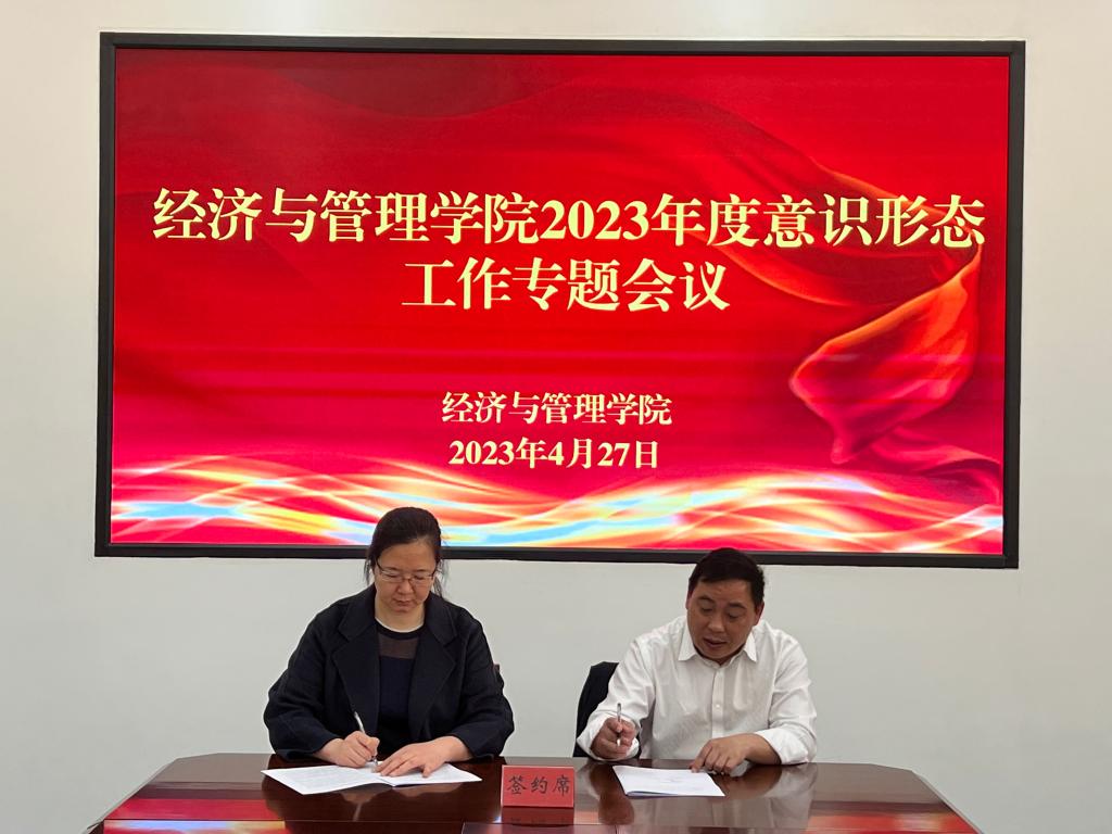 会上,学院党委书记蒋志辉与学院相关部门负责人签订《意识形态工作责任书》。