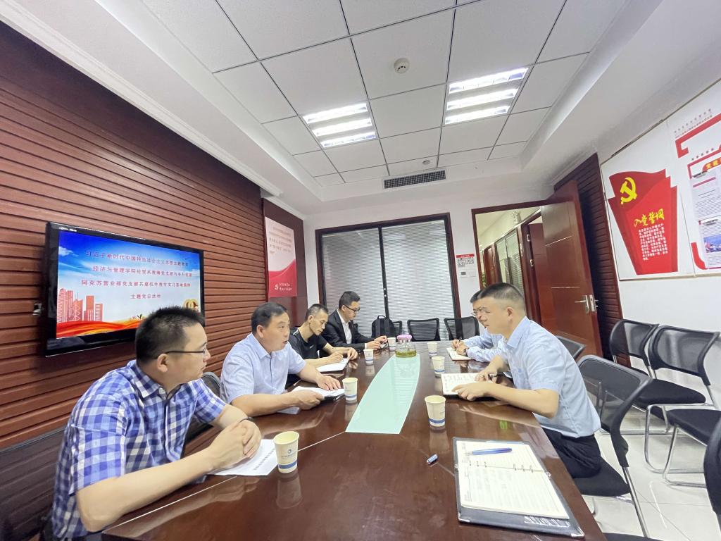 党委书记蒋志辉、经贸系党总支书记孙良斌等一行4人与阿克苏地区申万宏源西部证券公司开展党支部联谊共建、实习基地签订及挂牌仪式主题党日活动。