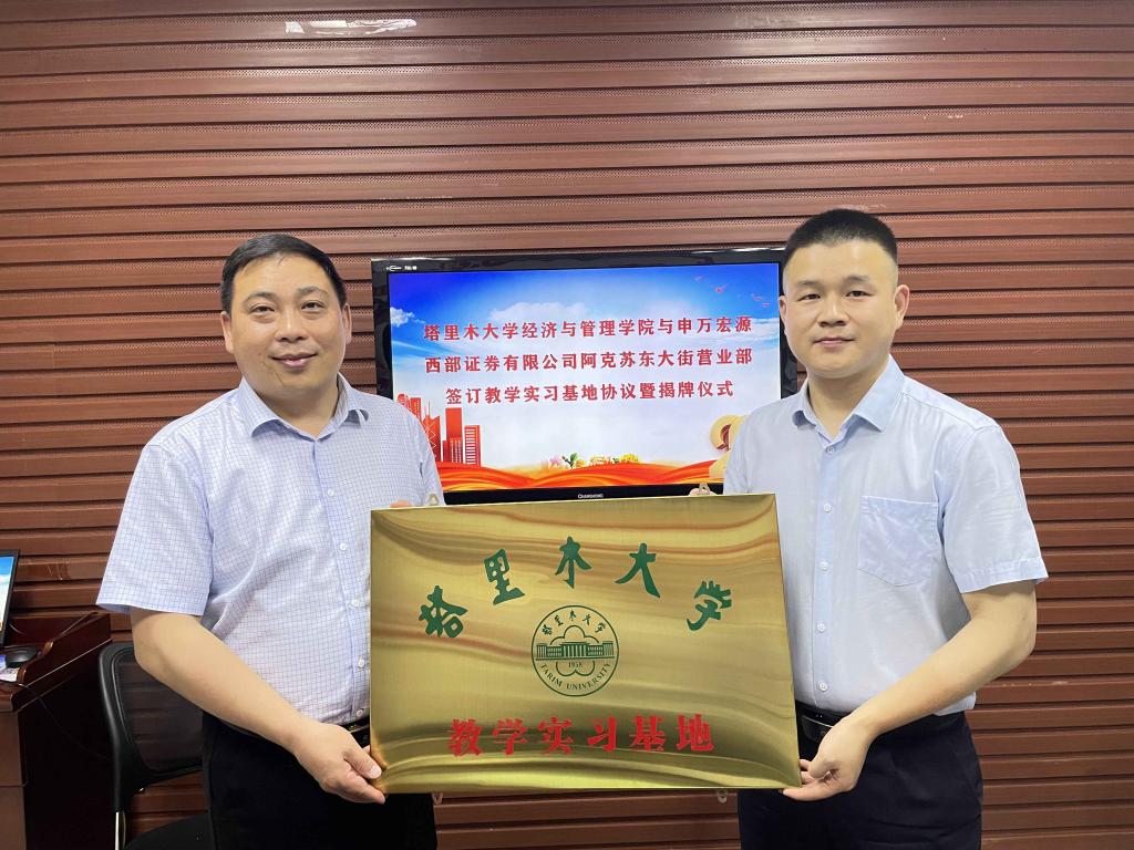 与申万宏源西部证券共建校外教学实习基地协议,并进行了挂牌仪式。