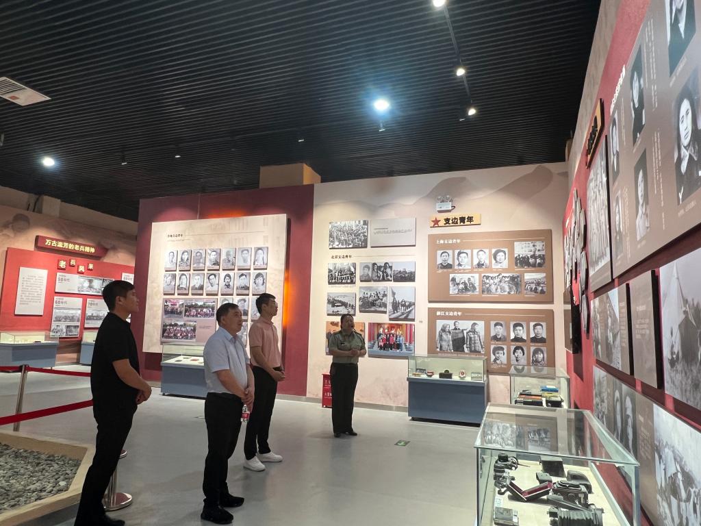 蒋志辉一行参观了老兵精神展示馆、中国人民解放军进军和田纪念碑,学习了沙海老兵解放和田、建设和田的英雄事迹,了解了老兵精神研究中心建设情况。