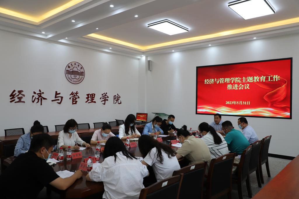5月31日,学院学习贯彻习近平新时代中国特色社会主义思想主题教育领导小组召开主题教育工作推进会议,小组成员参会,会议由学院党委书记蒋志辉主持,在文科实验楼209会议室召开。