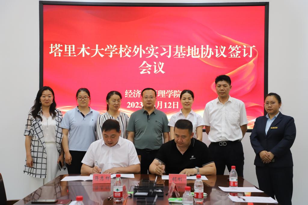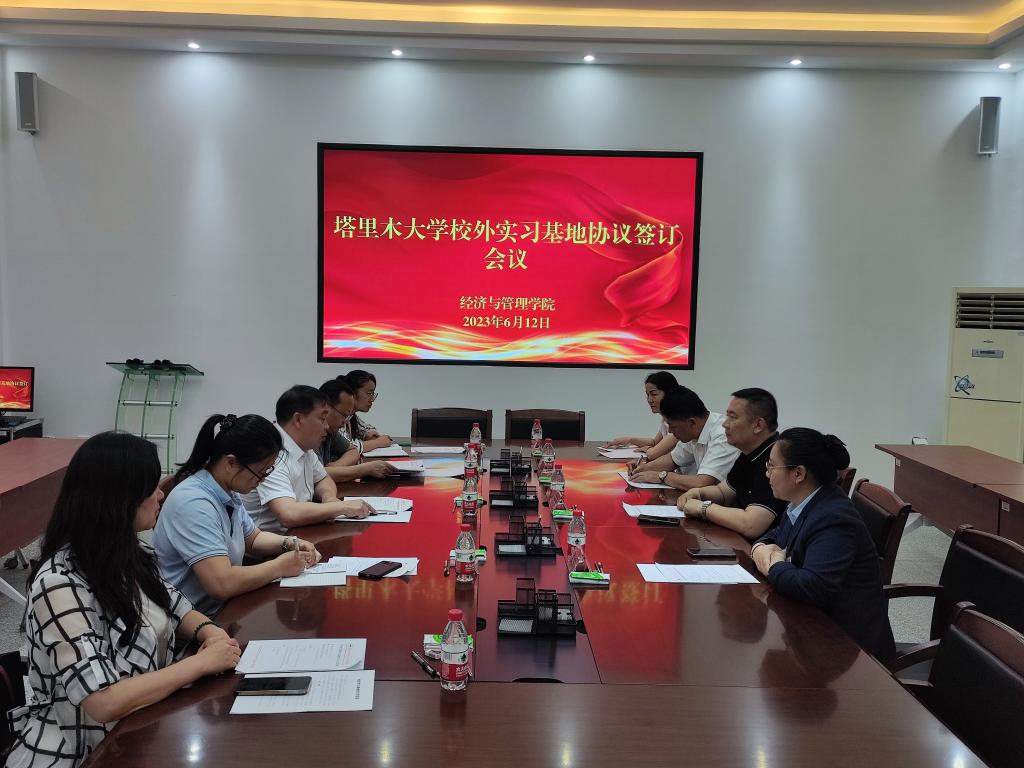 与西部绿洲国际实业有限公司阿拉尔分公司在文科实验楼209会议室签署校外实习基地协议。