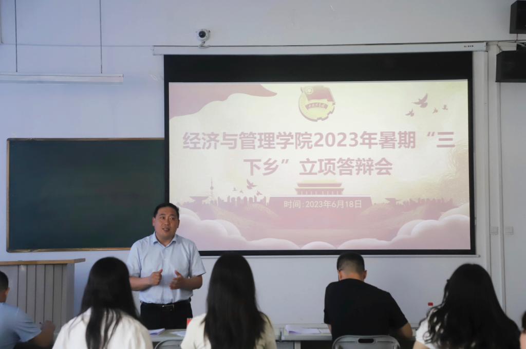 开展暑期“三下乡”社会实践立项答辩。此次答辩分2组在文科实验楼107、108教室进行。学院党委书记蒋志辉、学校资产处副处长李刚、学校团委副书记毕永福担任第一组评委,学院党委副书记朱哲、教务处副处长贾强、学工部思政科副主任谢曾曾老师担任第二组评委。