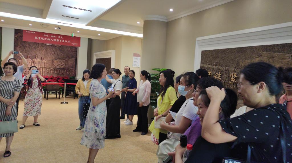 最后,在校史馆2楼,谢霞副书记带领在场党员重温入党誓词。