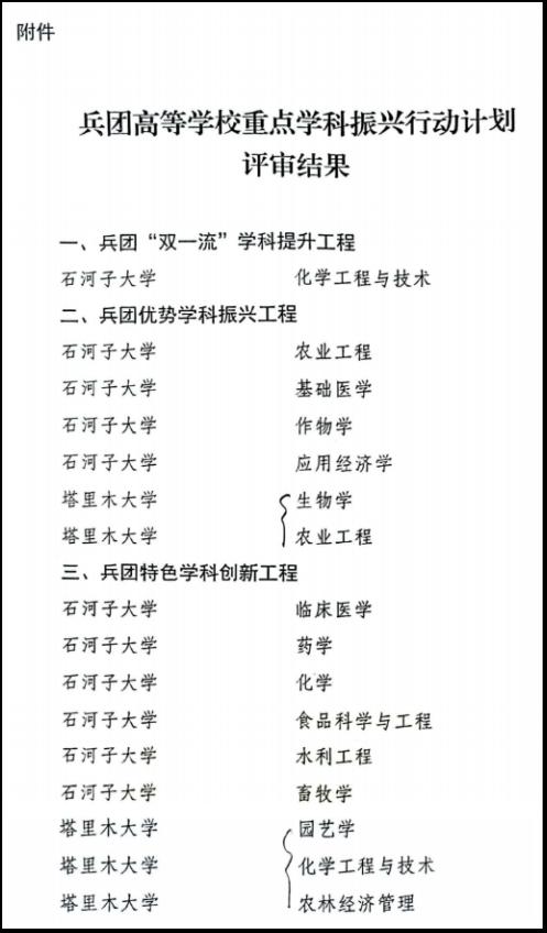 近日,兵团学位委员会发布了《关于公布兵团高等学校重点学科振兴行动计划评审结果的通知》(兵学位〔2023〕2号),对获批兵团“双一流”学科提升工程、兵团优势学科振兴工程、兵团特色学科创新工程及兵团培育学科育新工程等项目的学科予以公示,51短视频