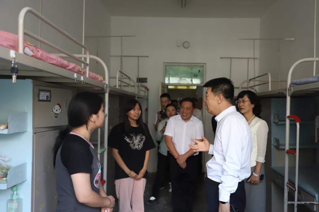 宿舍设施,得到校领导充分肯定,并向同学们送来关心与问候。“我和校长就是你们新的家长,有什么困难找我们。”赵光辉书记的关怀与问候,让同学们感受到塔大温暖。