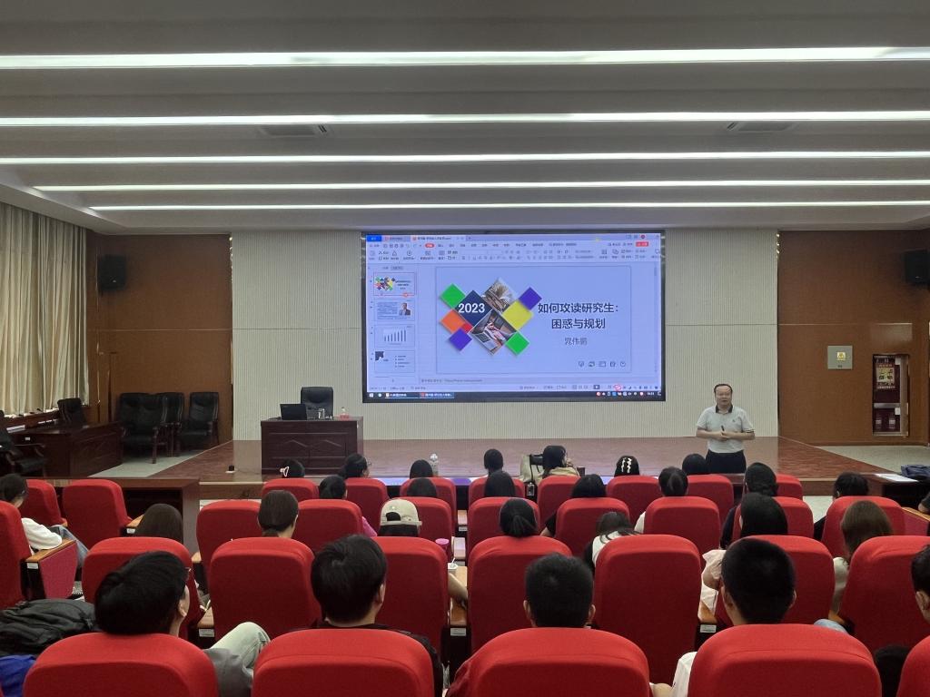 党委委员、副院长晁伟鹏以“如何攻读研究生:困惑与计划”为题为2023级新生做专题讲座,学院全体2023级研究生新生参加,讲座在文科实验楼报告厅504举行。