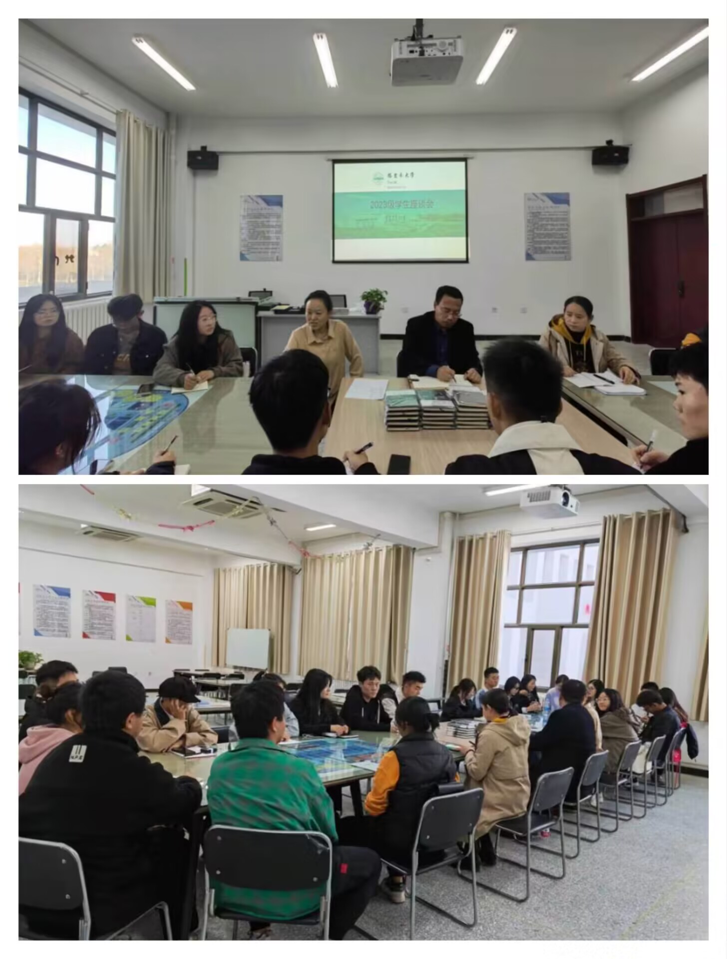 的教育管理工作,关心了解学生的思想动态和学习生活状况,收集学生对教育、管理、服务等方面的意见和建议,更好地服务于学生,学院于11月1日在文科实验楼211室召开了2023-2024学年第一学期期中教学检查学生座谈会,会议由教务办副主任席春玲主持,学院党委委员胡宝华、教务办老师刘春风以及各班级学习委员代表参加了此次座谈会。