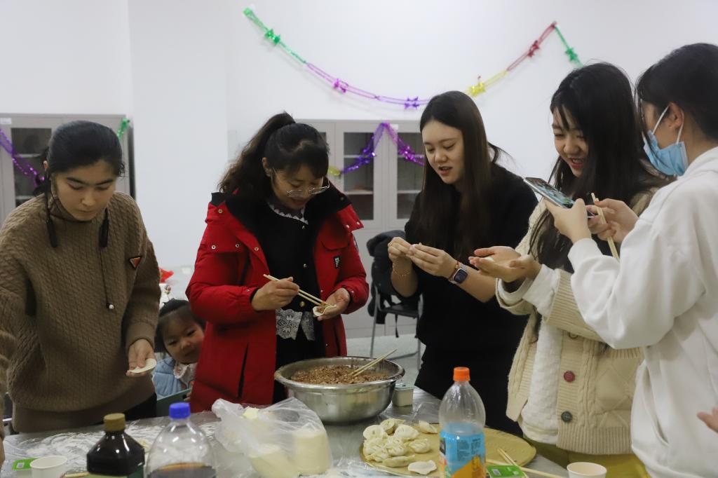 活动现场笑语不断,洋溢着喜悦祥和的气息,结亲的老师和同学们动作娴熟,一双双灵巧的手把浓浓的冬至情通通包进了圆鼓鼓的饺子里。老师们边和同学们一起吃香喷喷的饺子,边了解他们近期学习、生活情况,大家脸上都洋溢着幸福的笑容。