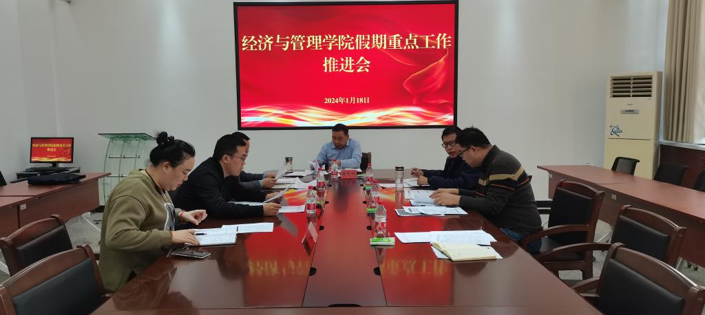 在文科实验楼209会议室召开了寒假期间重点工作推进会。学院党委书记蒋志辉,党委副书记、纪委书记朱哲,党委委员、副院长晁伟鹏,党政办主任李黎,经贸系主任苏旭峰,工商系副主任马信春及科研办副主任王春霞参会。