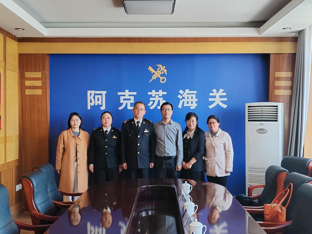 3月15日上午,朱哲带队一行5人前往阿克苏海关进行实地调研,阿克苏海关副关长王鹏举详细介绍了单位的发展情况,双方就人才培养、科研合作等方面进行深入交流,达成合作意向。