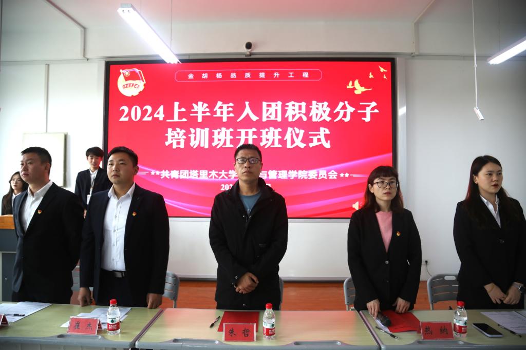 于逸夫楼307教室举办了2024年上半年入团积极分子培训班开班仪式。学院党委副书记、纪委书记朱哲,团委副书记热纳汗·阿布力米提,全体辅导员出席本次仪式,各团支部推荐的132名入团积极分子参加此次培训班。本次开班仪式由热纳汗·阿布力米提主持。