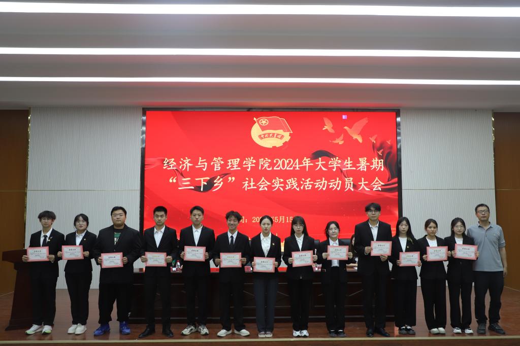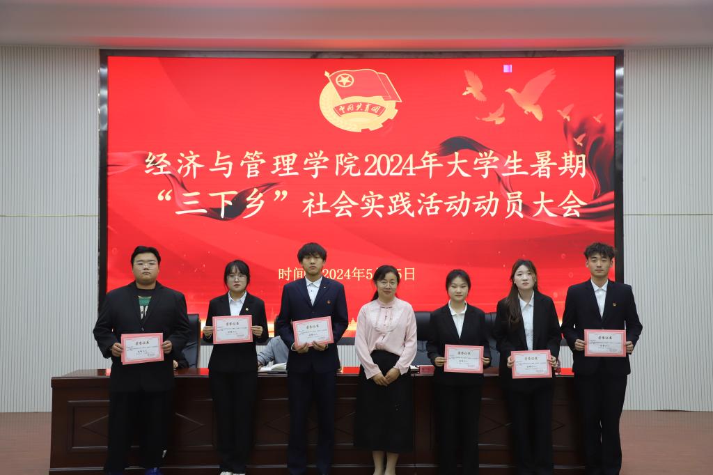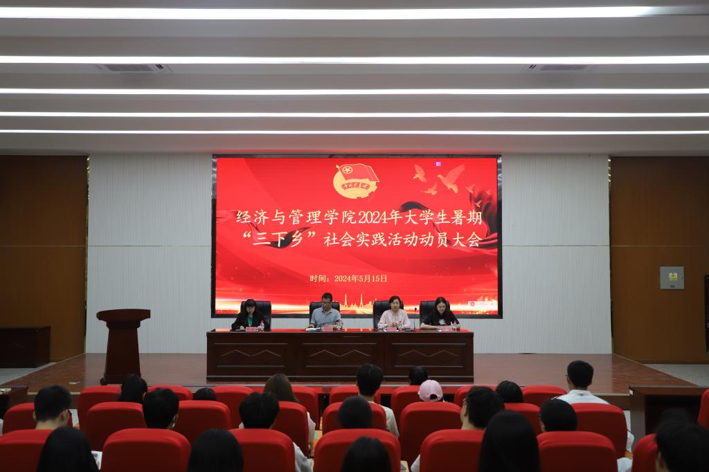 于文科实验楼504报告厅召开2024年暑期“三下乡”动员大会。学院党委副书记、纪委书记朱哲,学院党委委员、学办主任王小云出席大会,大一至大三各班班委代表,2024年返家乡优秀团队及个人参加。