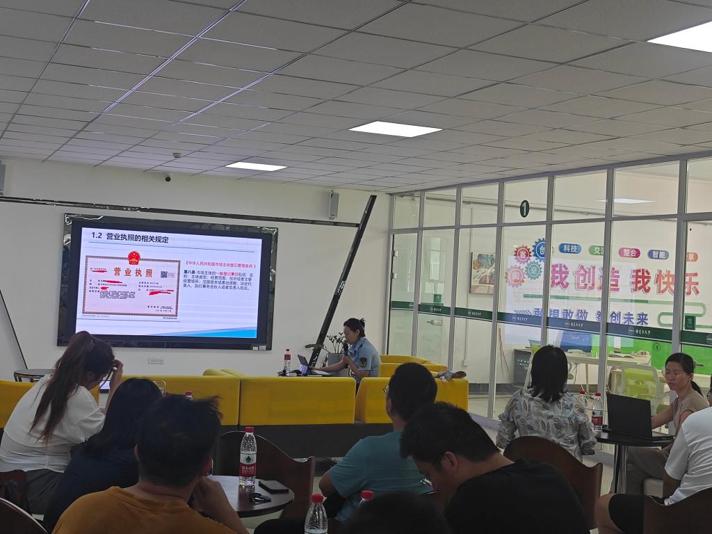 创业实践登记注册业务培训”,培训从分别从关于营业执照的基本知识、办理营业执照的材料和流程、全流程网上申报、营业执照取得后的权利和责任4个方面展开。