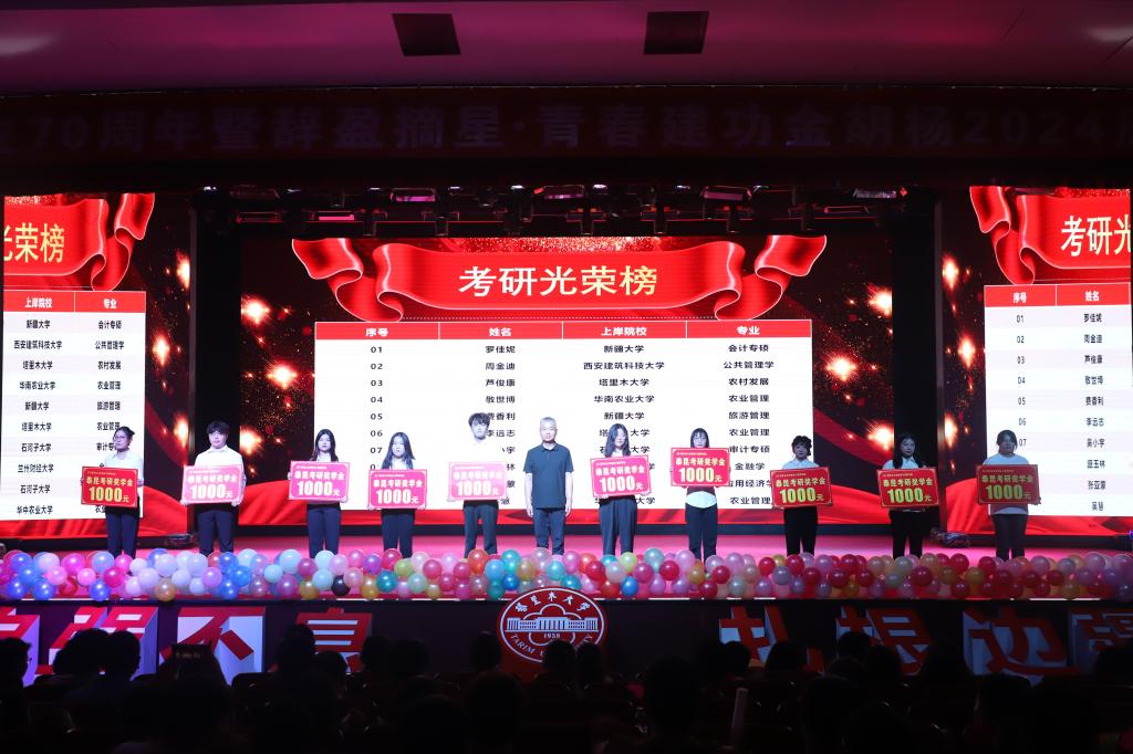 为了让高分“上岸”考生激励学弟学妹们找到努力方向,引导他们正确备考,晚会还特别设置了考研学子颁奖仪式,由泰昆-阿拉尔市瑞利恒生物蛋白有限公司董事长甘丛贵先生为10名考研学生代表颁发价值1000元的泰昆考研奖学金,让广大经管学子见证“上岸”师兄师姐们的“荣耀”,同时为自己的考研路埋下奋力一拼的种子!