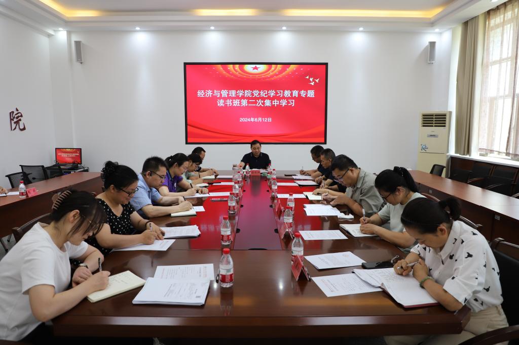 党委在文科了实验楼209会议室召开党纪学习教育专题读书班第二次集中学习,学院党委书记蒋志辉主持会议并讲话,学院领导、党委委员、各办公室、系负责人参加学习。