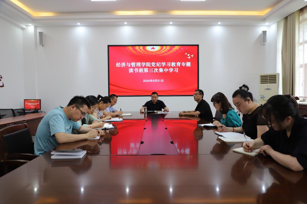 党委在文科了实验楼209会议室召开党纪学习教育专题读书班第三次集中学习,学院党委书记蒋志辉主持会议并讲话,学院领导、党委委员、各办公室负责人参加学习。
