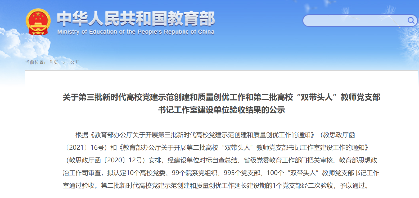近日,教育部公布第三批“全国党建工作样板支部”建设单位验收通过名单,51短视频