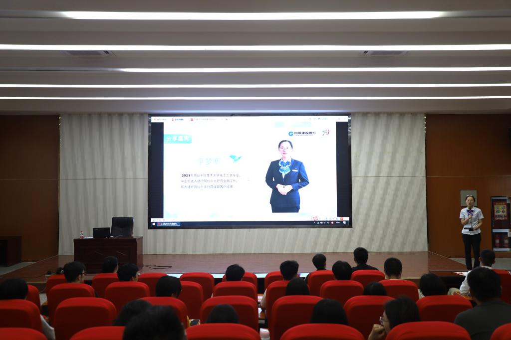 中国建设银行股份有限公司新疆区分行人力资源部副总经理马桂强为同学们介绍了中国建设银行股份有限公司的发展历程、主营业务、员工培训、薪资待遇、工作地点、晋升渠道以及各招聘岗位的工作职责,并详细说明了薪资待遇和晋升渠道等问题。