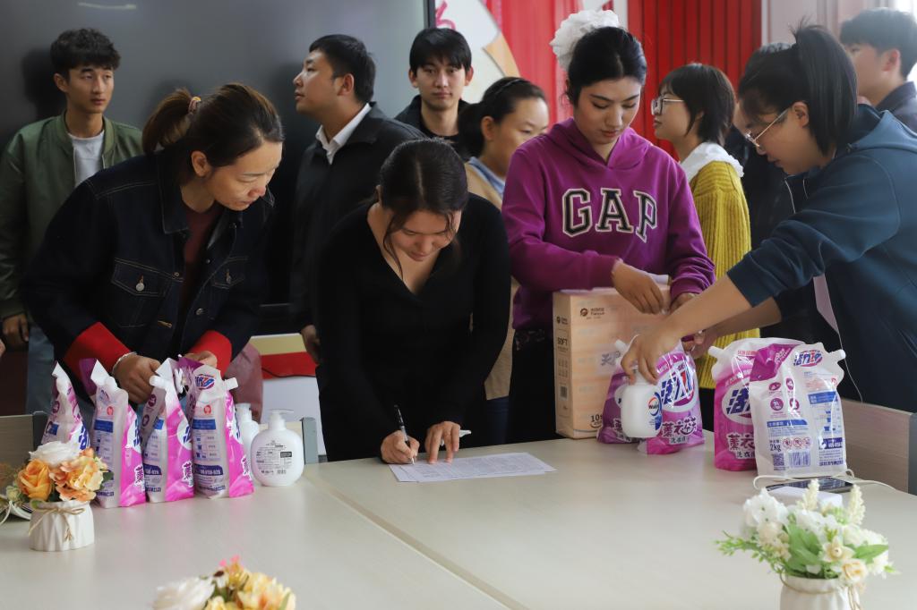 活动现场,学院老师为少数民族同学发放慰问品,并询问学生近期的学习、生活情况以示关心和帮助。