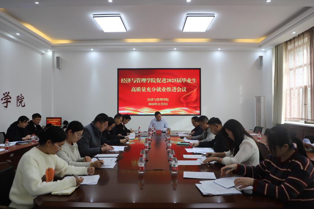 于文科实验楼209室组织召开了促进2025届毕业生充分高质量就业工作推进会议。学院党委书记蒋志辉,学院党委委员、副院长晁伟鹏,各系书记、主任、2025届毕业生班主任及全体辅导员参加此次会议。会议由晁伟鹏主持。