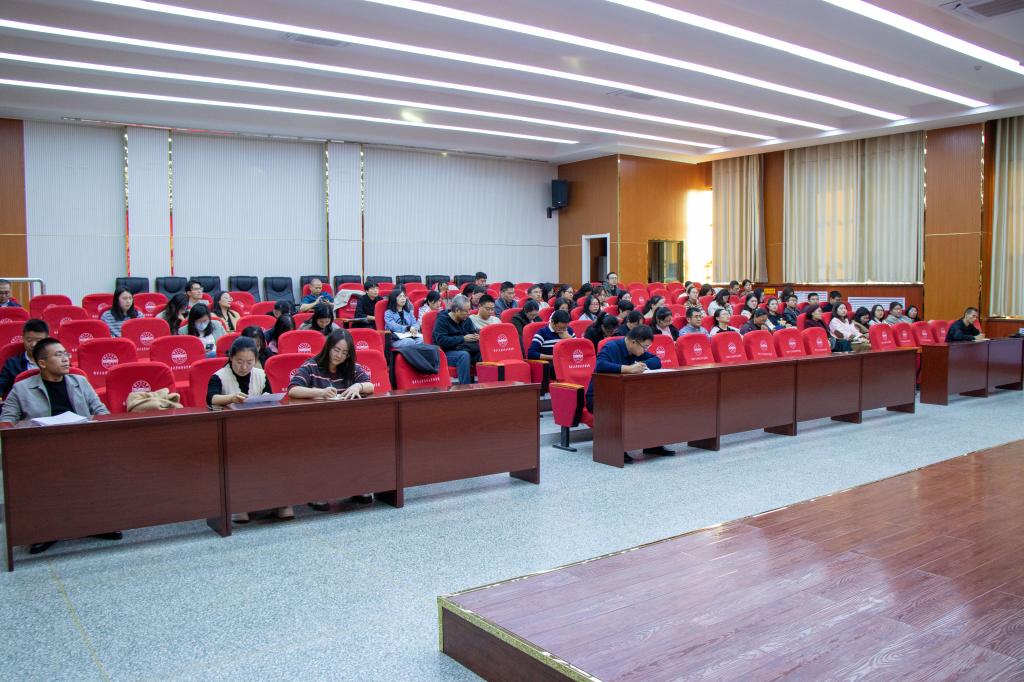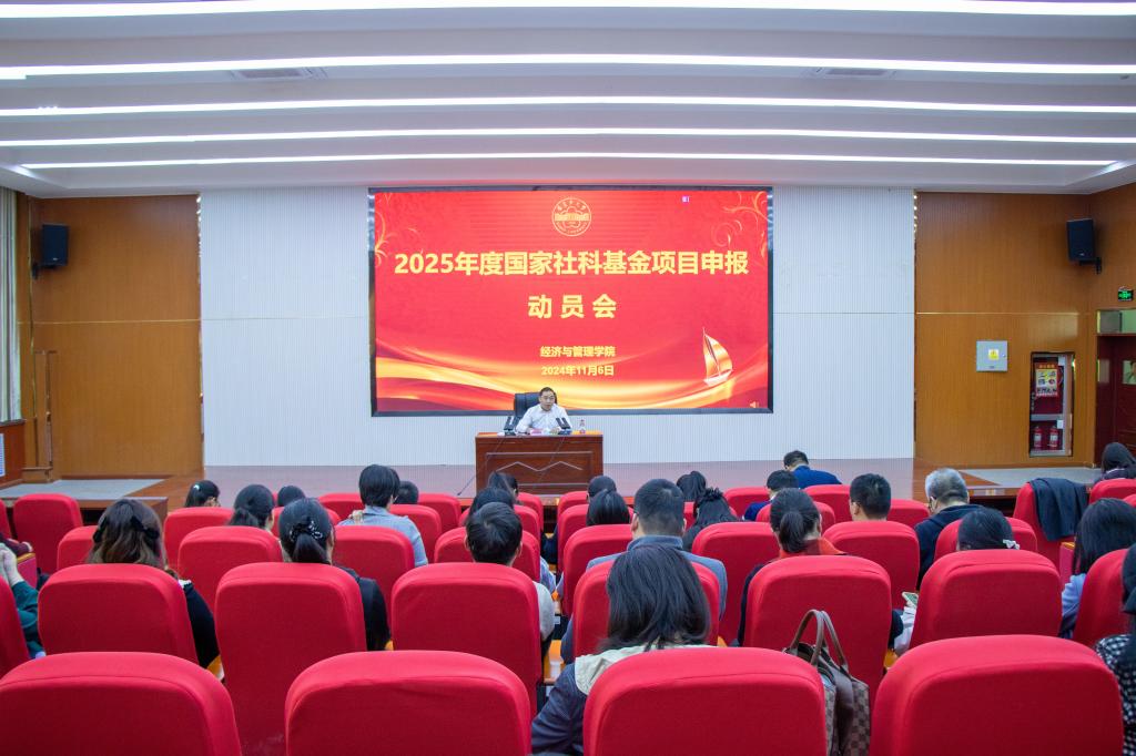 在文科实验楼报告厅504召开2025年度国家社科基金申报动员会。会议由学院党委书记蒋志辉主持,各系党总支书记、主任及全体教师参会。