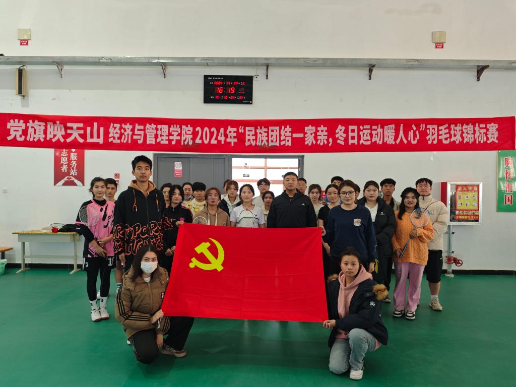 “民族团结一家亲,冬日运动暖人心”羽毛球比赛在乒羽馆举行,各学生支部党员、各年级学生积极报名参加比赛。
