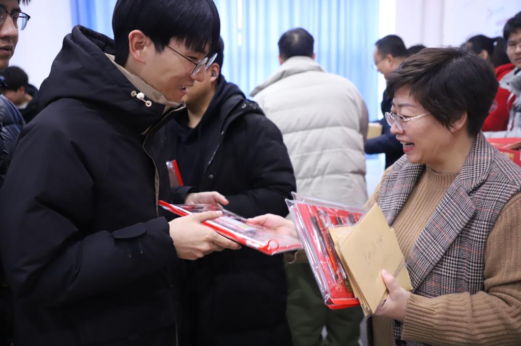 蒋志辉发表总结讲话。他从今年考研形势和报考比例讲起,让考研学子士气更足。他强调,学院始终高度重视学风建设,鼓励支持并时刻关注“经胡杨”学子们考研,希望通过此次慰问,为考研学子打气,助力他们在即将到来的考试中取得优异成绩。发放慰问品过程中,他还为每位考研学子送上一句特别的祝福语,让考研学子感受满满的温暖和关爱。