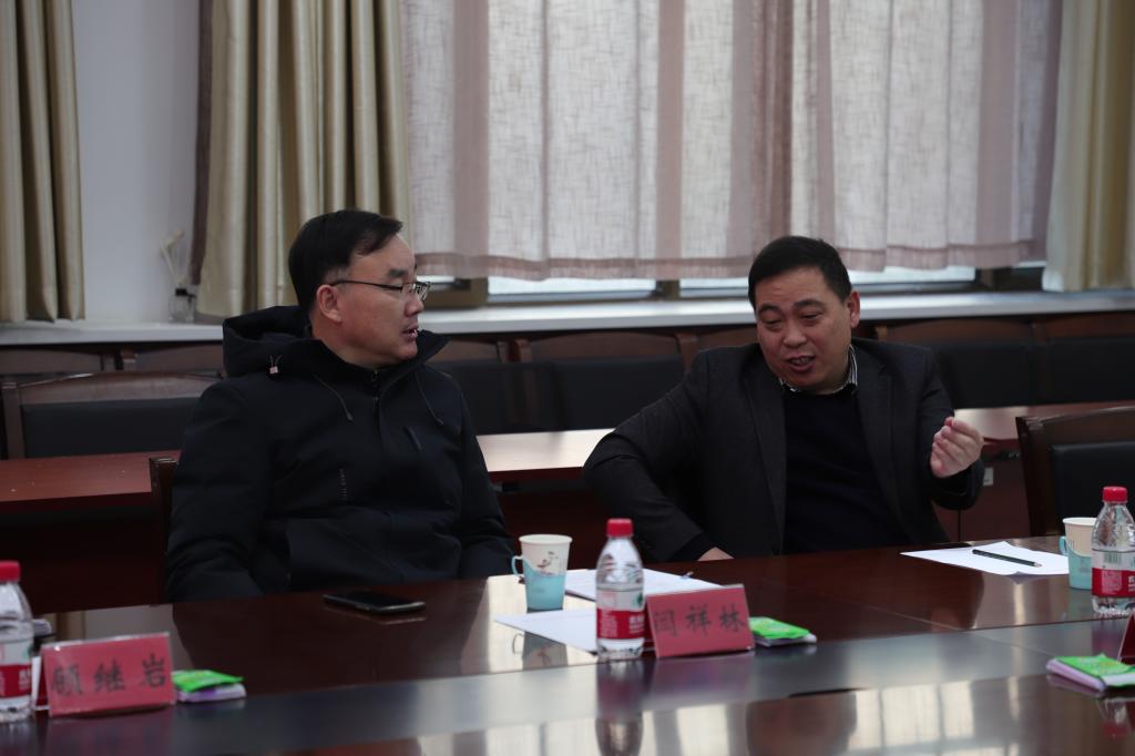 工作生活、科研等方面是否有困难。随后与学院党委书记蒋志辉探讨学院博士点申报等相关工作。
